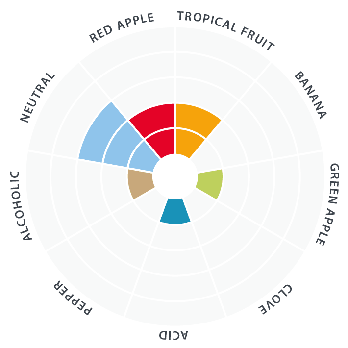 Fruity and estery with notes reminiscent of red or green apple, light banana, and soft tropical hints, supported by a gentle fresh yeasty character. Low hop masking and a malt forward balance yield rounded, full bodied beers.